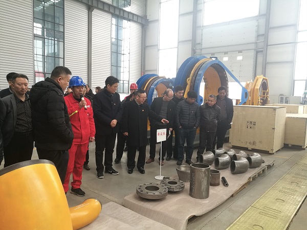 全體參加觀摩會人員在股份公司董事長、黨總支書記何清帶領下參觀了公司堆焊車間,參觀期間公司許總對我公司復合堆焊設備和技術進行了詳細講解。