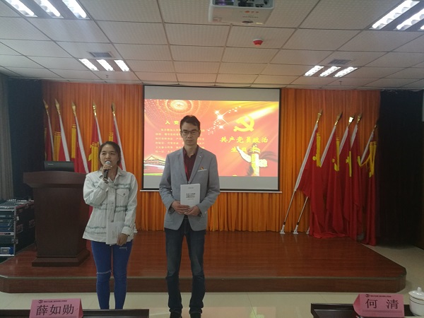 活動共有七項議程,會議開始,全體黨員共唱國歌,然后在黨總支何書記的領(lǐng)誓下,重溫入黨誓詞。隨后,觀看學(xué)習(xí)新聞聯(lián)播視頻《習(xí)近平在紀(jì)念五四運動100周年大會上的講話》和《關(guān)于在全區(qū)開展“支部強(qiáng)堡壘 黨員爭先鋒”活動實施方案》。之后,為5月份入黨的黨員過政治生日,何書記代表公司黨總支向黨員張夢珠、郝朝文贈送了書籍。過“政治生日”的兩名黨員分別分享了入黨以來的感思感想,表示將在今后學(xué)習(xí)、工作中發(fā)揮黨員的先鋒模范帶頭作用。