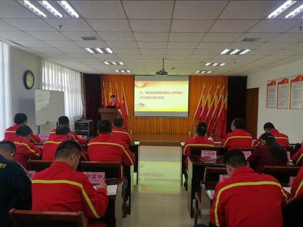 2020年5月11日下午,鄭州萬達重工股份有限公司黨總支在行政綜合樓二樓黨員活動室開展了2020年5月份主題黨日活動。黨總支全體黨員、入黨積極分子、入黨申請人共計40余人參加了此次活動。活動由萬達重工黨總支組織委員袁希海主持。