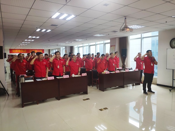 會議開始,全體人員共唱國歌,然后在誓詞輪值人萬達重工黨支部組織委員白楊的領誓下,重溫入黨誓詞。會議首先對8月份各黨小組學習、活動排名情況進行了通報,之后觀看了《習近平出席紀念中國人民抗日戰爭暨世界反法西斯戰爭勝利75周年座談會并發表重要講話》。通過學習,大家一致認為,作為黨員,要始終牢記這段歷史,以史為鑒,汲取偉大抗戰精神所蘊含的豐富精神養料,保持越是艱險越向前的剛毅勇敢,在披荊斬棘中開辟天地,在攻堅克難中創造業績,做敢于斗爭、善于斗爭、有血有肉有骨氣的新時代中國奮斗者。