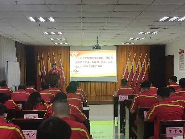 隨后,召開發展黨員工作會議。按照發展黨員工作流程,研究討論了發展對象王偉強、張珊珊、楊強、白東生4人轉預備黨員接收事宜。