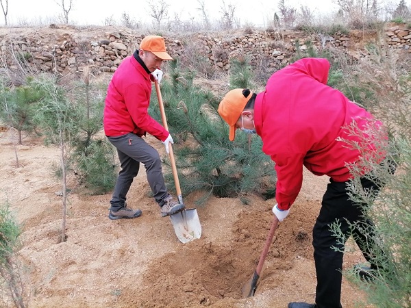 栽下棵棵樹苗,留下一片新綠。植樹現(xiàn)場黨旗、司旗、黨小組旗幟在風(fēng)中迎風(fēng)飄揚(yáng),植樹活動中,一派緊張有序、熱火朝天的勞動景象,大家個個態(tài)度積極、熱情高漲、干勁十足,揮鍬挖坑、運(yùn)送樹苗、扶植苗木、培實新土、提桶澆灌,大家比干勁、比質(zhì)量,各個環(huán)節(jié)銜接有序,樣樣做得認(rèn)真到位,大家樂在其中,配合默契,真正是勁往一處使、汗往一處流,一株株樹苗迎風(fēng)挺立,展現(xiàn)出勃勃生機(jī)。經(jīng)過熱烈有序的植樹勞動,共栽植側(cè)柏、油松苗木200余棵,順利完成了義務(wù)植樹任務(wù)。