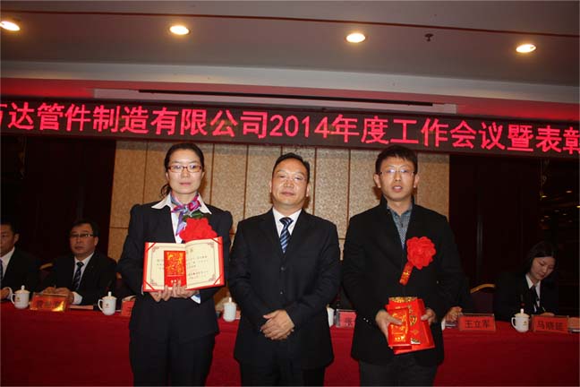 鄭州萬達(dá)管件制造有限公司2014年年會(huì)于2015年1月20日隆重召開。會(huì)議首先表彰了公司2014年度先進(jìn)工作者、先進(jìn)部門及班組、優(yōu)秀干部、年度進(jìn)步之星、銷售冠軍、優(yōu)秀黨員等十余個(gè)獎(jiǎng)項(xiàng),并對(duì)獲獎(jiǎng)?wù)哳C發(fā)了獎(jiǎng)金和證書。公司董事長、黨委書記何清同志在會(huì)議上做了題為《適應(yīng)新常態(tài) 開創(chuàng)新局面 實(shí)現(xiàn)公司持續(xù)健康穩(wěn)定發(fā)展 》的報(bào)告,總結(jié)了2014年公司的發(fā)展歷程,取得的成績和不足,展望和部署2015年公司發(fā)展的目標(biāo)和重點(diǎn)工作,為公司全力建設(shè)五位一體的萬達(dá)事業(yè)指明了努力方向。公司全體人員中午舉行了盛大的團(tuán)拜招待會(huì),歡聚一堂,其樂融融。