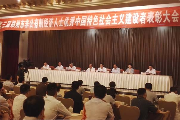 2016年5月31日下午,第三屆鄭州市非公有制經濟人士優秀中國特色社會主義建設者評選表彰活動在黃河飯店隆重召開。 鄭州市委副書記、市委秘書長胡荃,市委常委、統戰部部長王躍華,市人大常委會副主任王廣燦,市政府副市長李喜安,市政協副主席崔凡,市政協副主席、市工商聯主席薛景霞,市委統戰部常務副部長李俊超等領導同志出席會議。此外,市評選領導小組組成單位及市直有關部門負責同志,各縣(市)區黨委統戰部部長,工商聯主席、黨組書記,四個開發區統戰部門有關負責同志,鄭州市工商聯副主席、市總商會副會長,市直屬異地、行業商會會長共180多人參加大會。