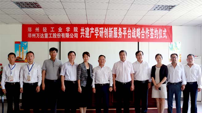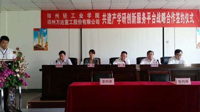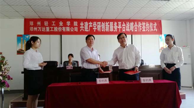 2016年9月21日,由鄭州萬達重工股份有限公司與鄭州輕工業(yè)學院共同建立的產(chǎn)學研創(chuàng)新服務平臺戰(zhàn)略合作簽約揭牌儀式在鄭州萬達重工股份有限公司順利舉行。