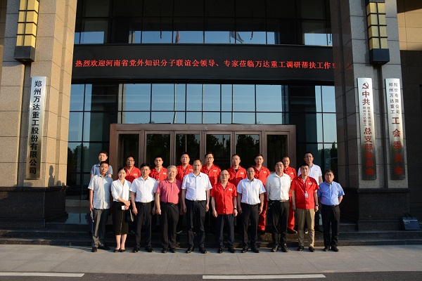 2021年6月21日下午, 河南省黨外知識分子聯誼會(簡稱:知聯會)執行會長、省政協副秘書長張廣東,省知聯會專委會主任、河南省投資集團副總經理李興佳及省委統戰部知聯會秘書處處長鄭萬紅一行蒞臨鄭州萬達重工股份有限公司調研座談暨舉行河南省黨外知識分子實踐創新基地揭牌儀式,鄭州萬達重工股份有限公司董事長、書記何清、總經理張付峰及公司部分高管參加活動。