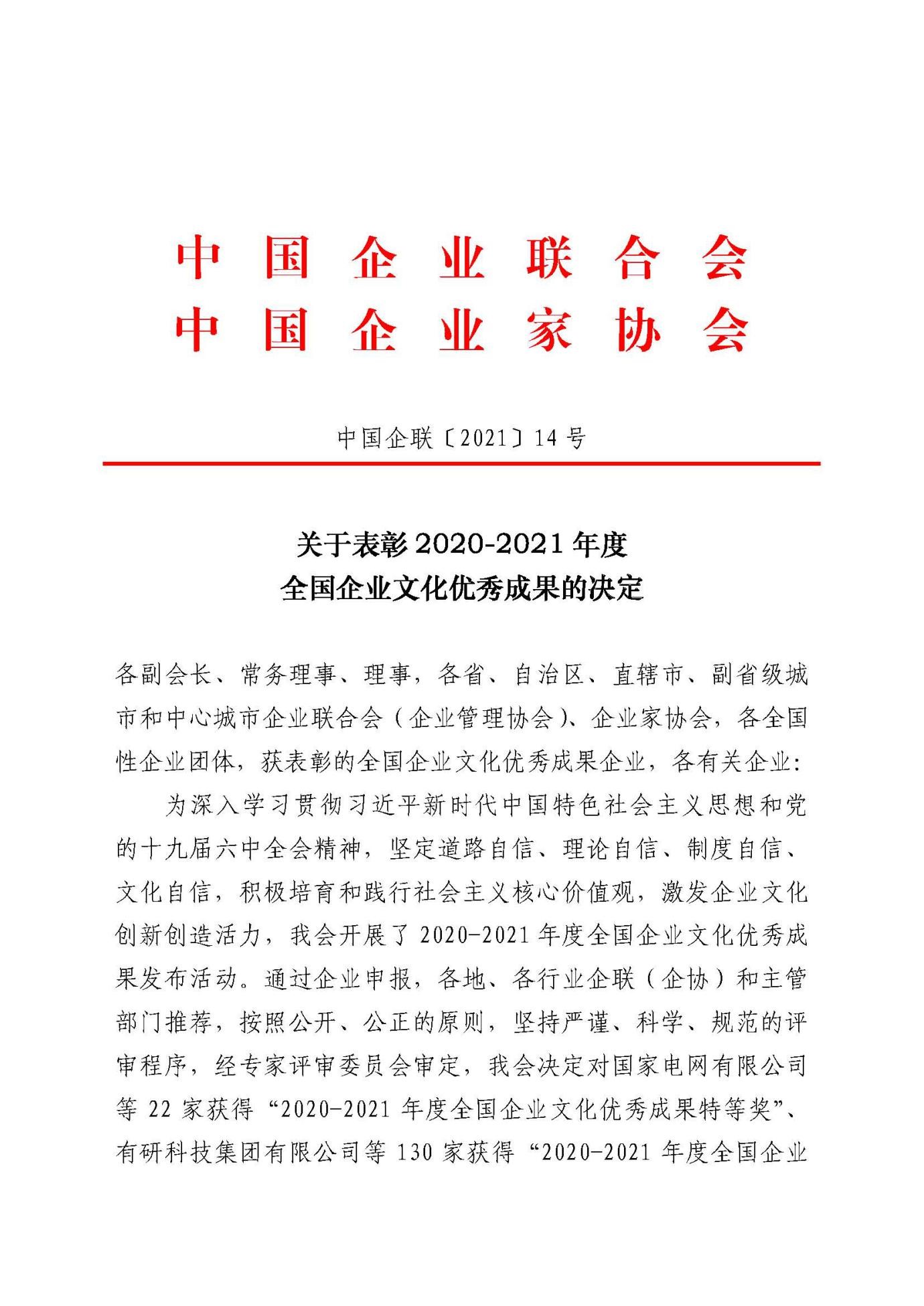 近日,中國企業聯合會、中國企業家協會印發文件表彰了2020-2021年度全國企業文化優秀成果企業,鄭州萬達重工股份有限公司榮獲“2020-2021年度全國企業文化優秀成果二等獎”!