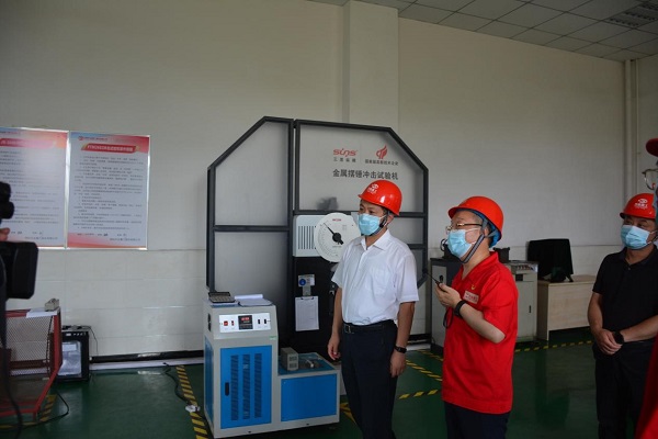 高義一行首先參觀了萬達重工技術(shù)中心(CNAS實驗室),股份公司董事長、書記何清就實驗室的高端檢驗檢測設(shè)備、檢測能力及產(chǎn)品研發(fā)能力、專利數(shù)量、國家標準、國際標準的參編情況等進行了匯報。