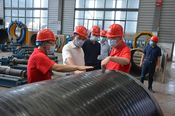 隨后,高義一行深入萬達重工堆焊智能制造車間、彎制車間等聯(lián)合工房進行參觀指導(dǎo),實地了解公司的生產(chǎn)運營情況,股份公司董事長、書記何清就公司核心用戶、科技創(chuàng)新、生產(chǎn)裝備、技術(shù)及生產(chǎn)能力、產(chǎn)品市場等情況向調(diào)研組作了詳細匯報,高副市長認真聽取了產(chǎn)業(yè)發(fā)展情況匯報,了解企業(yè)發(fā)展過程中遇到的難題,聽取了對進一步改善營商環(huán)境的建議。