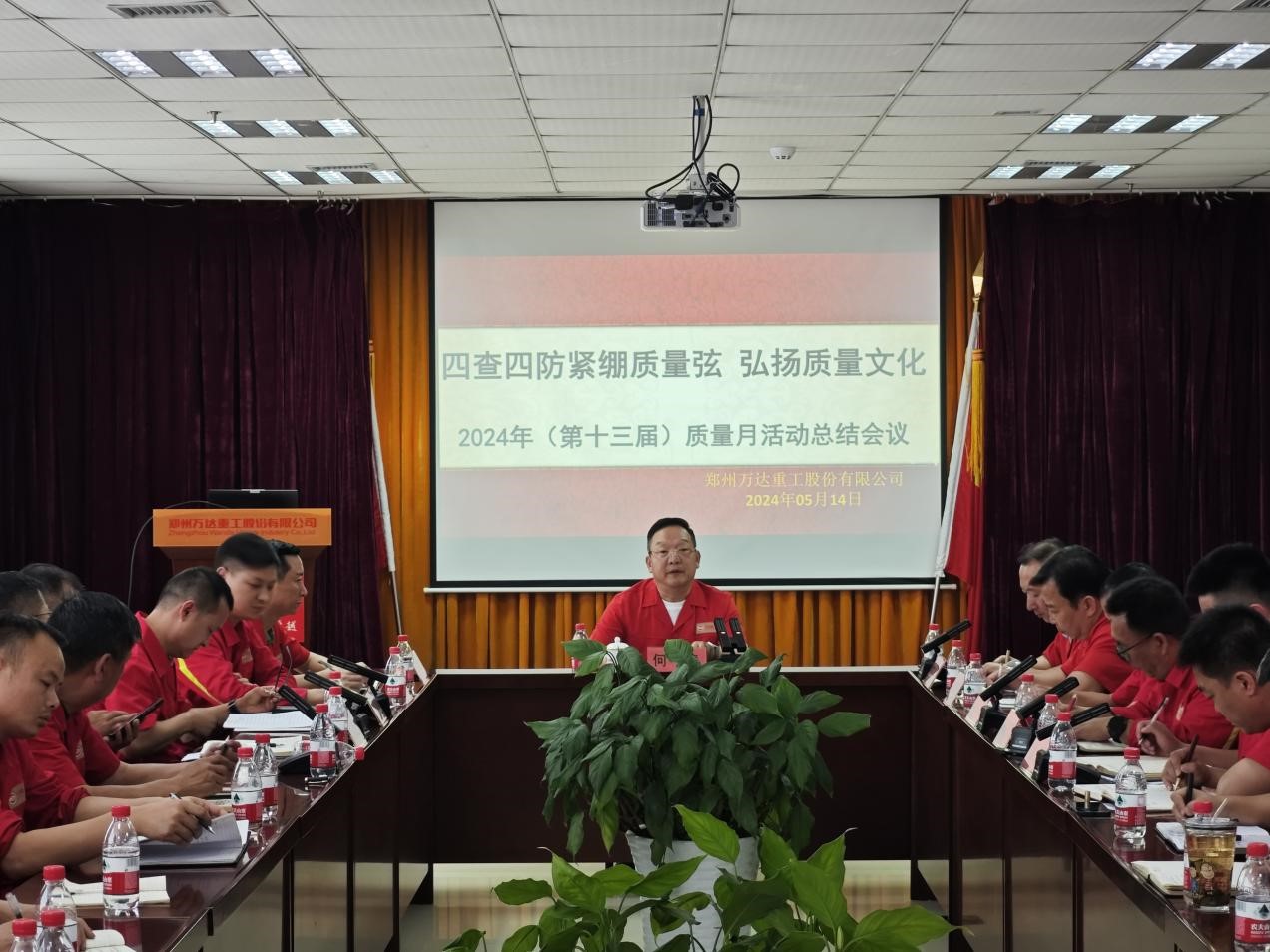 2024/05/15 1279 2024年5月14日下午,鄭州萬達(dá)重工股份有限公司在行政樓二樓會(huì)議室召開了股份公司第十三屆質(zhì)量月活動(dòng)總結(jié)會(huì)議。股份公司黨委書記、董事長、質(zhì)量月活動(dòng)領(lǐng)導(dǎo)小組組長何