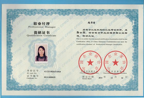 熱烈祝賀我公司劉保國(guó)等6位同志獲得職業(yè)經(jīng)理人資格證書